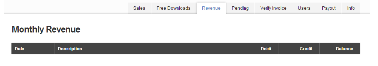 在 Revenue 选项卡中可以查看每个月的收入,还可以查看收入付给您银行或 PayPal 帐户的时间。