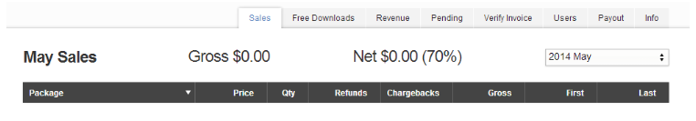 在 Sales 选项卡中可以查看所有资源的销售数据,其中将显示所选月份的销售总额和净额。可以通过下拉框更改月份来查看不同月份的销售数据。