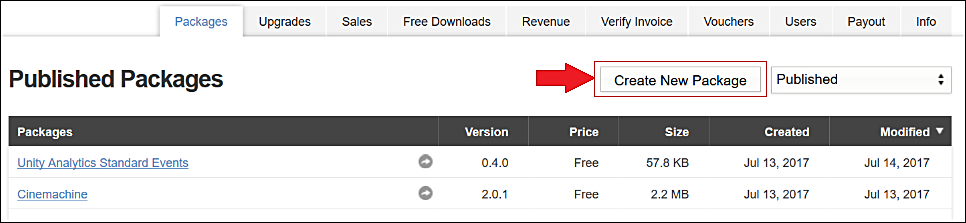 如果准备好提交资源,首先要做的就是为资源包创建草案。转到 Publisher Administration 页面的 Packages 选项卡,然后单击“Create New Package”按钮