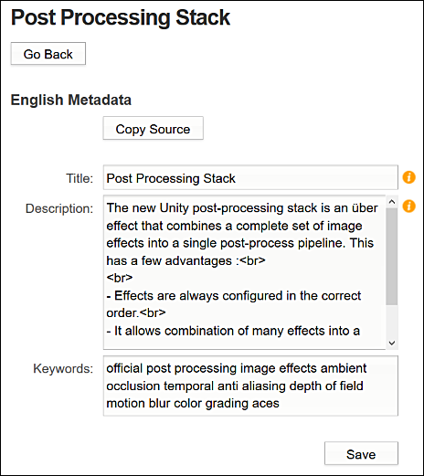 单击 Metadata and Artwork 下的“Metadata”选项卡下方的 Edit 链接,可以更改资源的名称。