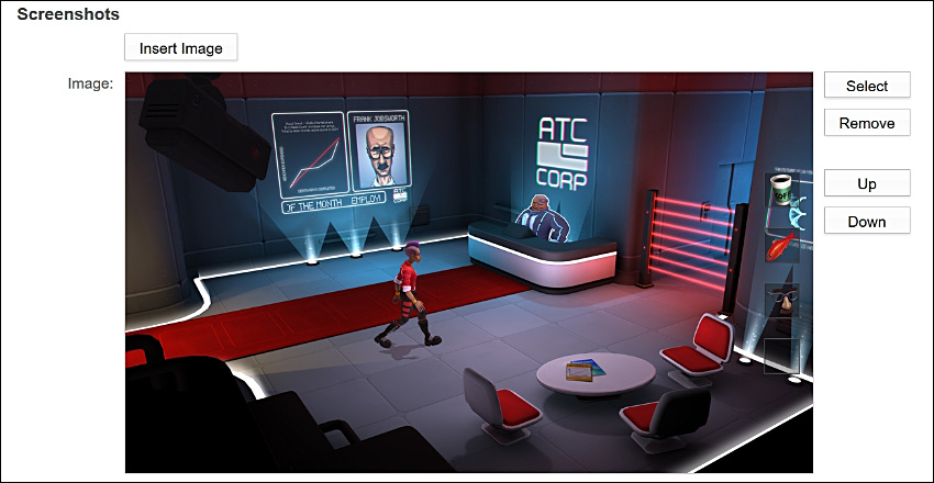 单击“Insert Image”按钮即可上传图像并将其添加为资源的截屏。可通过这种方式添加多个截屏。如果要删除截屏,单击该图像旁边的“Remove”按钮即可删除图像。