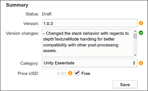 在资源摘要中,可以更改资源的 Version Number 和 Price USD 等信息。