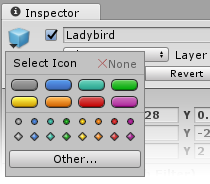 无论是为游戏对象还是脚本分配图标,弹出的 Select Icon 菜单都是相同的: