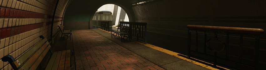 在选择室内光照强度时,尽可能确保室内光照强度不高于太阳光。示例场景设置在隧道中,因此天花板上不太可能有任何高强度的光源超出太阳光亮度: