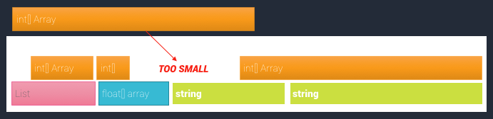 但是,如果分配了大型对象,却没有足够的连续可用空间来容纳该对象(如上所示),Unity 内存管理器将执行两个操作。