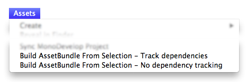 1.Build AssetBundle From Selection - No dependency tracking。此方法与前一种方法相反,仅会包含您选择的单个资源。