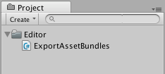 为了此示例的需要,请将以上链接中的脚本复制并粘贴到一个名为 ExportAssetBundles 的新 C# 脚本中。此脚本应放在名为 Editor 的文件夹中,以便它能在 Unity Editor 中运行。