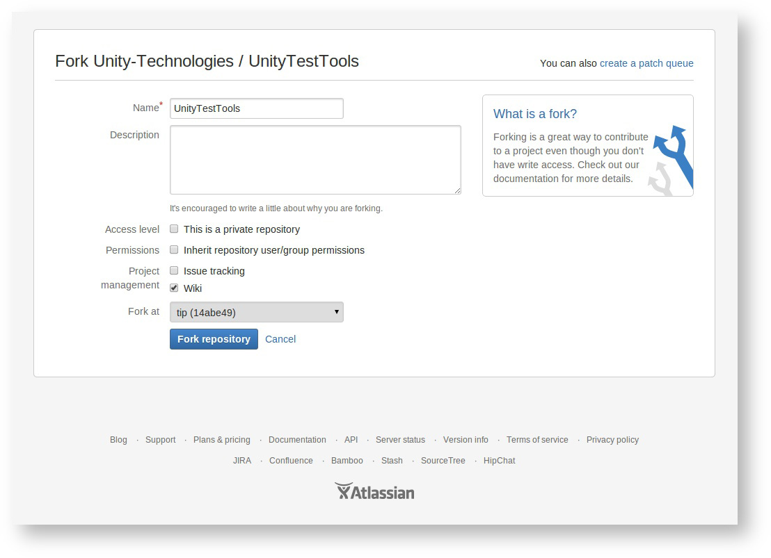 单击 Fork 按钮并填写打开的窗体,然后单击 __Fork repository__: