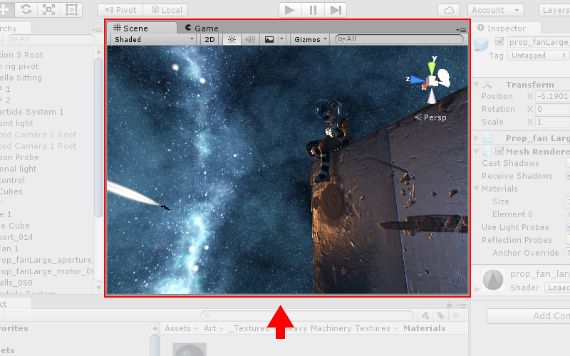 Scene 视图可用于直观导航和编辑场景。根据正在处理的项目类型,Scene 视图可显示 3D 或 2D 透视图。 请了解有关 Scene 视图和 Game 视图的更多信息。