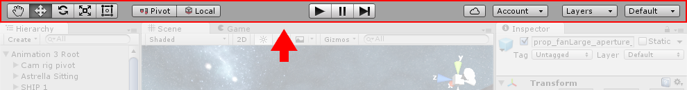 工具栏不是窗口,是 Unity 界面中唯一无法重新排列的部分。