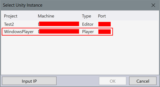可以将代码编辑器连接到本地网络上已启用调试的任何 Unity Editor 或 Unity Player。连接调试器时,确保连接到正确的实例。如果您知道运行 Unity Player 的设备的 IP 地址或计算机名称,这将有助于找到正确的实例。