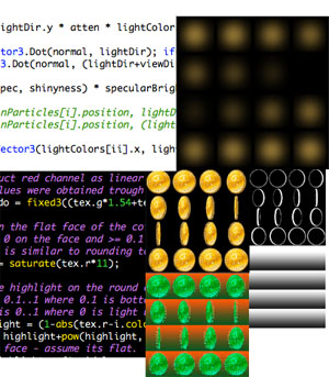 如果我们有强大的硬件,可使用标准方法来解决这一问题。将每个硬币设置为一个对象,用顶点光照、前向光照或延迟光照对该对象进行着色,然后在此基础上添加发光作为图像效果,从而使明亮反光的硬币将光线照射到周围区域。