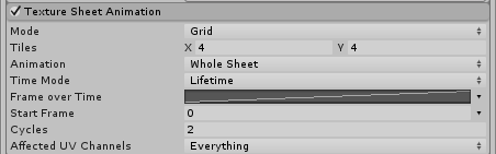 粒子的图形不必是静止图像。此模块允许您将纹理视为可作为动画帧进行播放的一组单独子图像。