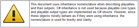 可播放项是一种继承 IPlayable 接口的 C# 结构体。它用于定义其与其他可播放项的关系。同样,可播放项输出是继承 IPlayableOutput 接口的 C# 结构体,用于定义 PlayableGraph 的输出。