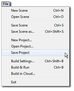 可在 Unity 中进行的某些更改不是特定于场景的,而是项目范围的。通过从 File 菜单中选择“Save Project”,可以独立于场景更改来保存这些设置。