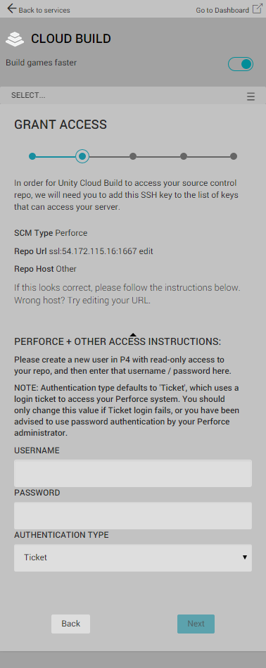 Unity Cloud Build 支持存储在 Perforce 代码仓库中的项目。