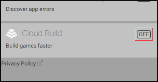 1.在 Services 窗口中的 Cloud Build 旁边,单击 OFF 按钮以将其切换为 ON 状态: