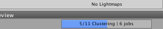预计算过程运行时,Editor 右下角会出现一个蓝色进度条。根据是否启用 Baked GI 或 Precomputed Realtime GI,需要完成不同的阶段。有关当前过程的信息会显示在进度条上。