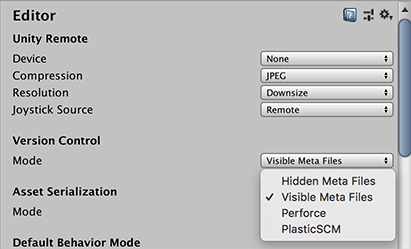 要使用 Unity 不支持的版本控制系统,请在 Editor 窗口中选择 MetaData 作为版本控制的 Mode。这样一来,即可使用您选择的版本控制系统来管理这些资源的源资源和元数据。要了解与此相关的更多信息,请参阅关于外部版本控制系统的文档。