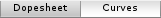 Animation 视图的右侧是当前剪辑的时间轴。每个动画属性的关键帧都显示在此时间轴中。时间轴视图有两个模式:__关键帧清单 (Dopesheet)__ 模式和__曲线 (Curves)__ 模式。要在这些模式之间切换,请单击动画属性列表区域底部的 Dopesheet 或 __Curve__: