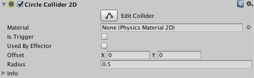 | Used by Effector | 如果希望 2D 圆形碰撞体由附加的 2D 效应器使用,请选中此框。 |