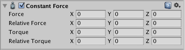 恒定力 (Constant Force) 可用于快速向__刚体__添加恒定力。如果不希望某些一次性对象以较大的速度开始而是逐渐加速(比如火箭),则很适合使用恒定力。