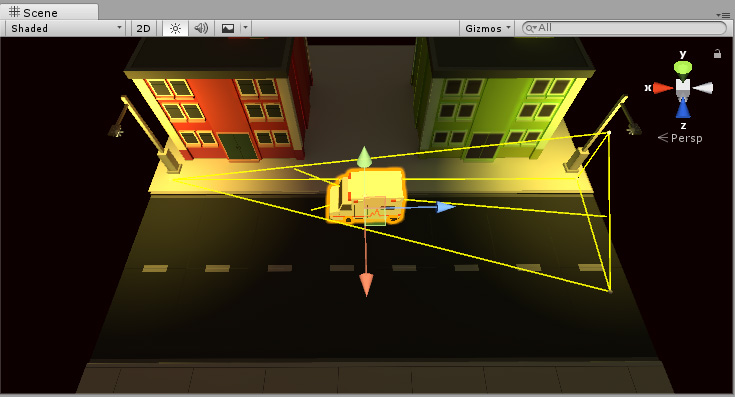 现在场景的暗区中也有了光照探针。因此,移动的救护车从场景的一侧移动到另一侧时,救护车上的光照更暗。
