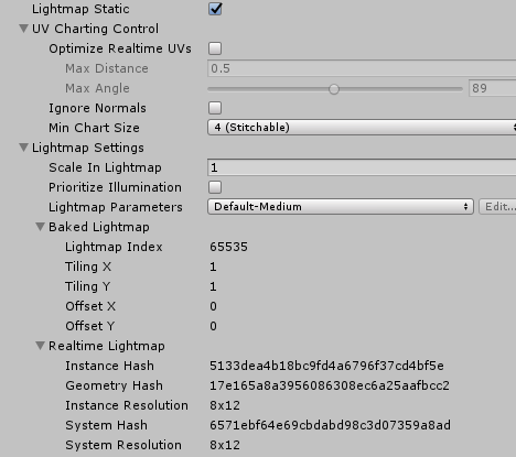 | Lightmap Parameters | 允许为此游戏对象选择或创建一组光照贴图参数。 |