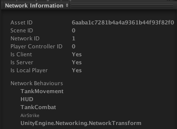 必须在运行时生成的所有预制件上添加 Network Identity 组件,才能让网络系统使用这些预制件。请参阅对象生成以了解更多信息。
