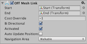 Auto Update Positions 如果启用此属性,当端点移动时,网格外链接将重新连接到导航网格。如果禁用,即使移动了端点,链接也将保持在其起始位置。