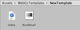 创建模板后,该模板会显示在 Player 设置窗口上的选项中。模板的名称与其文件夹相同。(可选)文件夹可包含名为 thumbnail.png 的文件,其尺寸应为 128x128 像素。该缩略图会显示在 Inspector 中,用于提示完成的页面的外观。