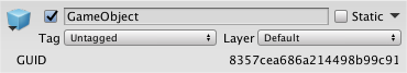 如果所检查的对象是持久资源而不是场景对象,则以下示例脚本可将资源的 GUID 显示为标题中的可复制标签。将其复制到名为 EditorHeaderGUID.cs 的文件中,然后将文件放在名为 Editor 的文件夹中。