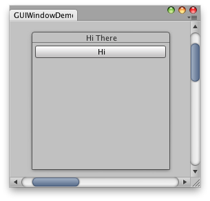 void DoWindow(int windowID) { GUILayout.Button("Hi"); GUI.DragWindow(); } }
