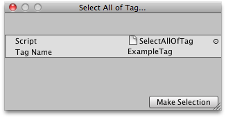 class SelectAllOfTag : ScriptableWizard { string tagName = "ExampleTag";